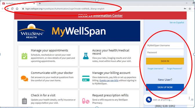 - First, enter your WellSpan log in credentials- if you do not have an account yet, please sign up. It is fast and easy: