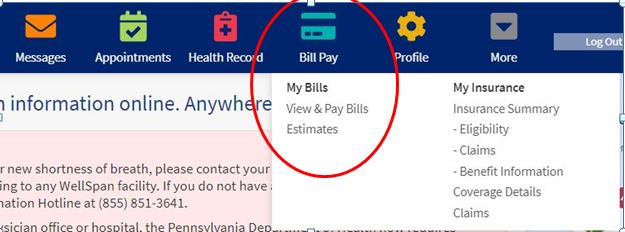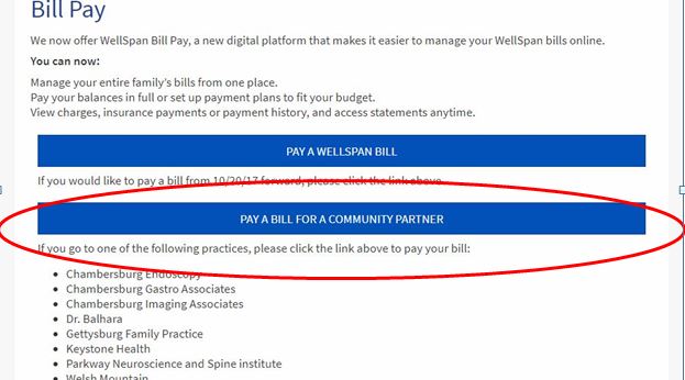 **When paying a Keystone Health balance, you will be taken to a WellSpan Health webpage. We partner with WellSpan on the electronic record system that we use. You will see your Keystone bill pay information after logging in.**